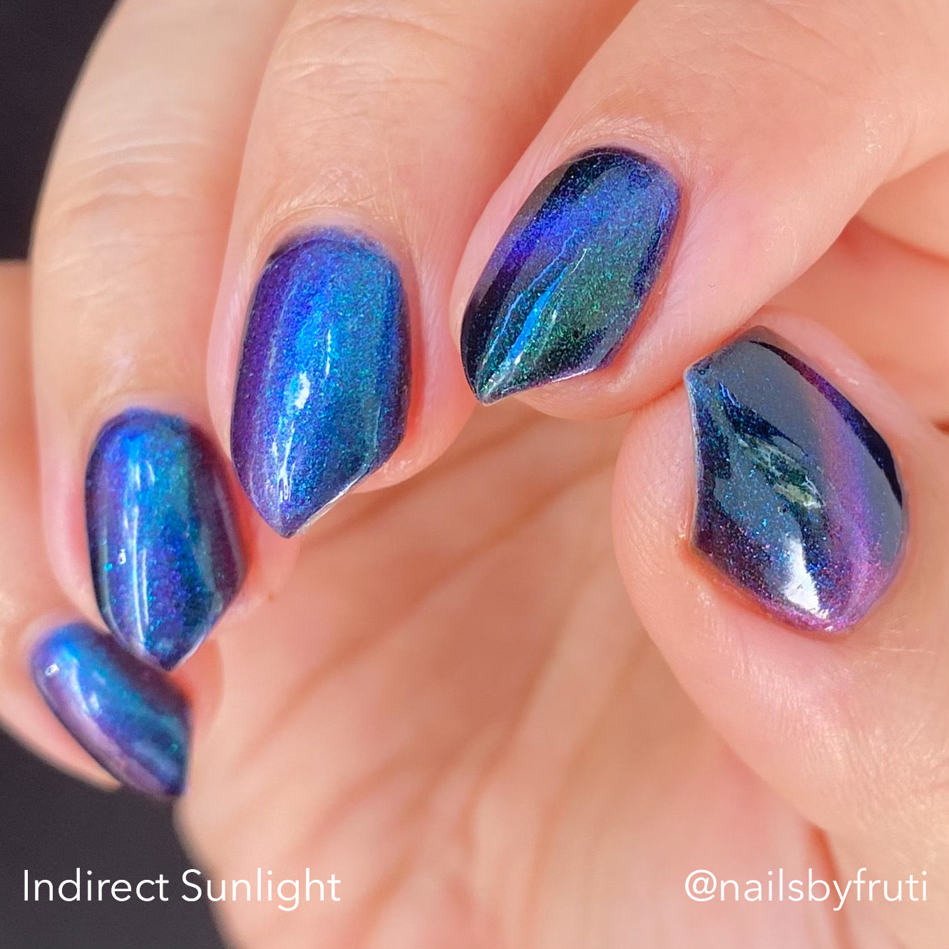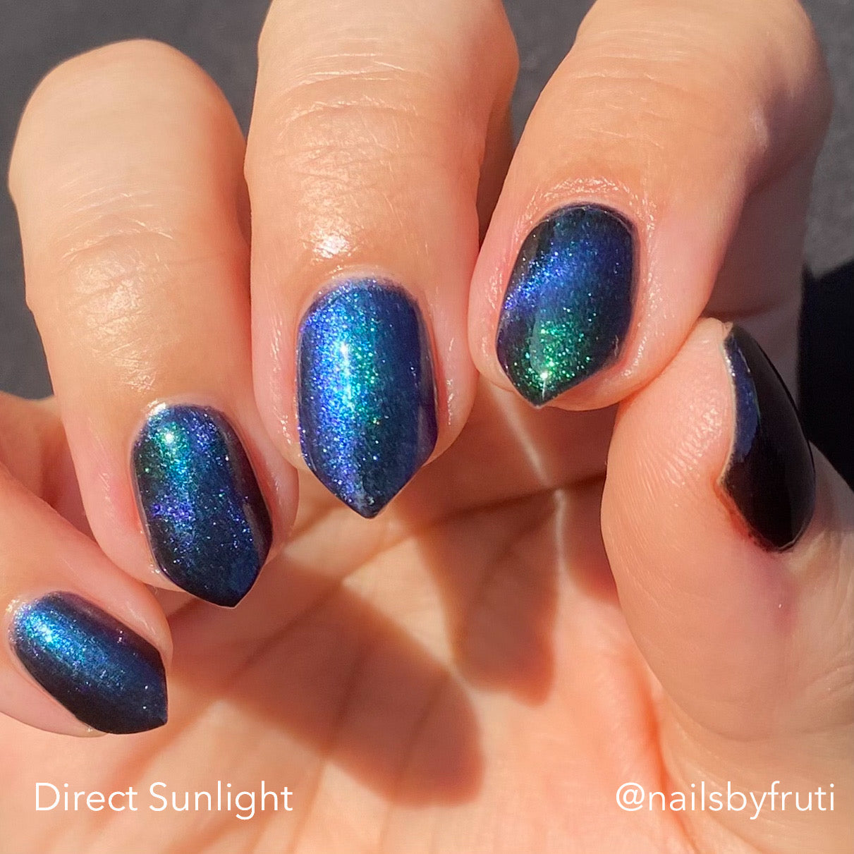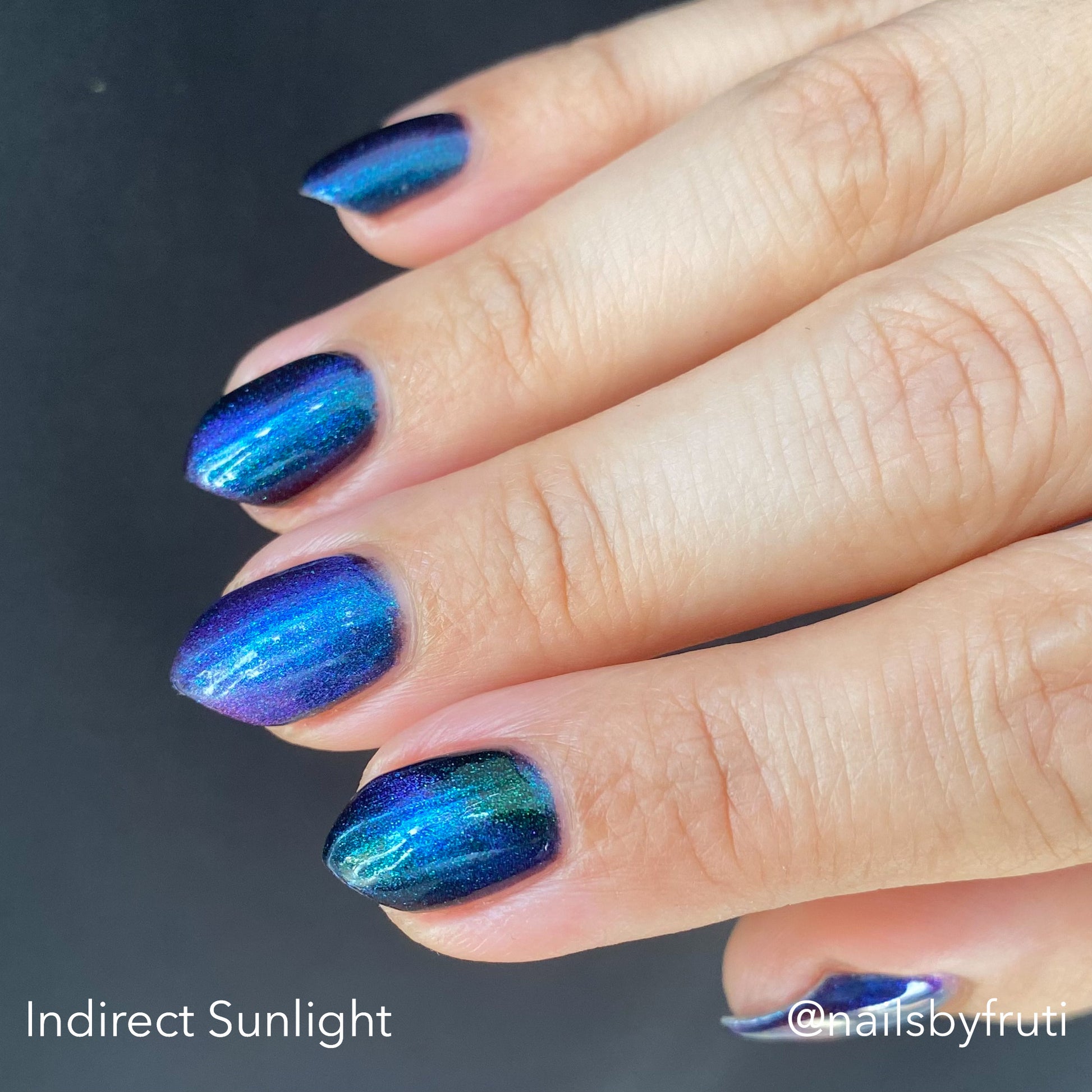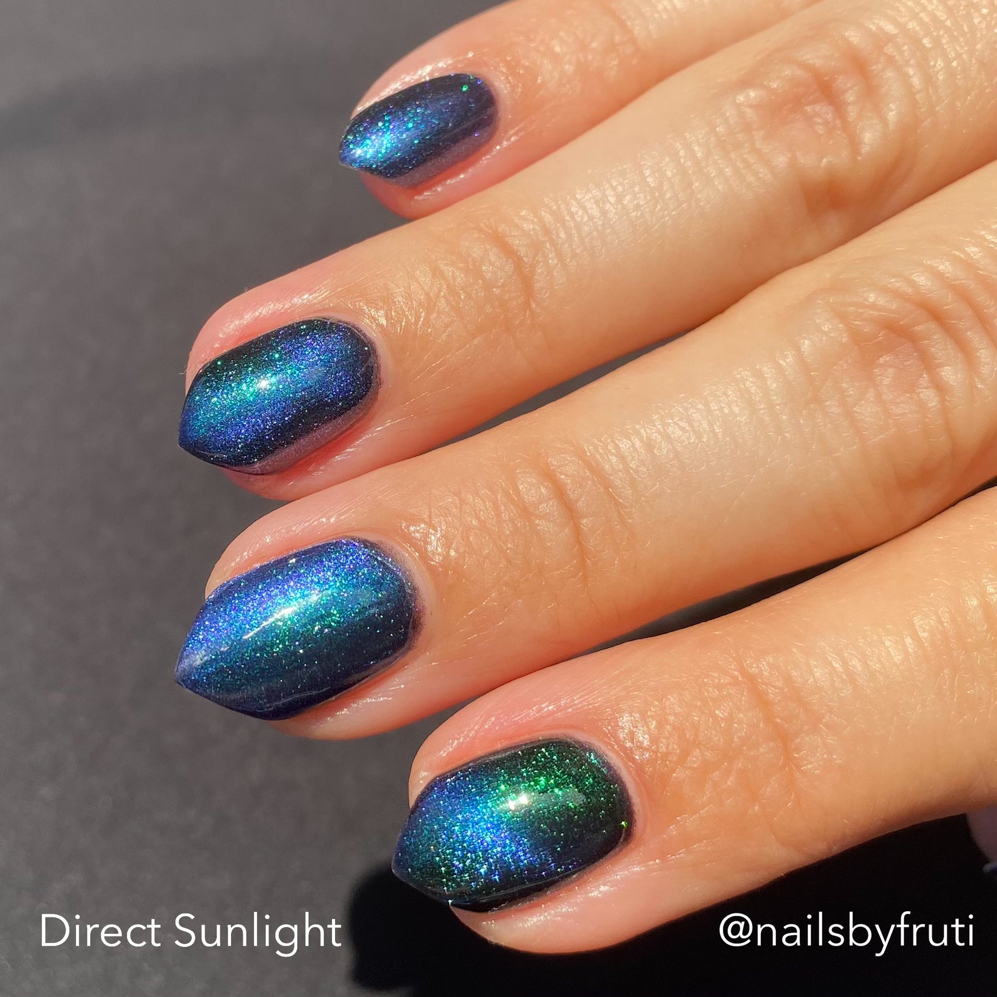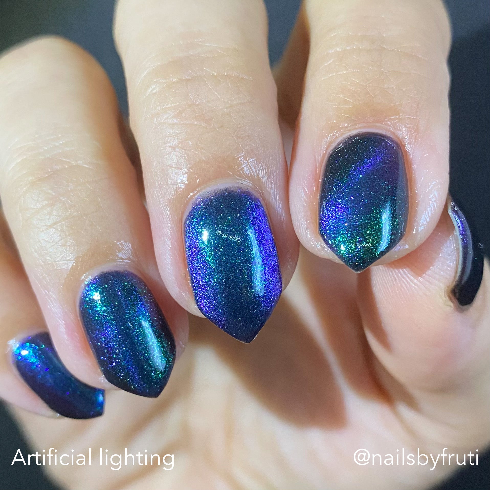 Do not disturb is a beautiful teal green shimmer floating in a black crelly base with an electrifying purple to blue magnetic.
