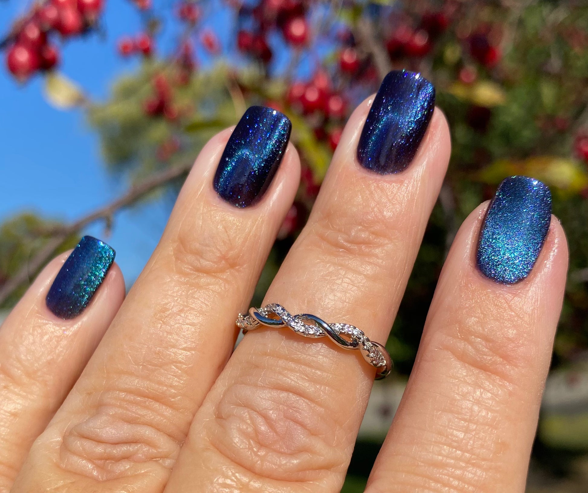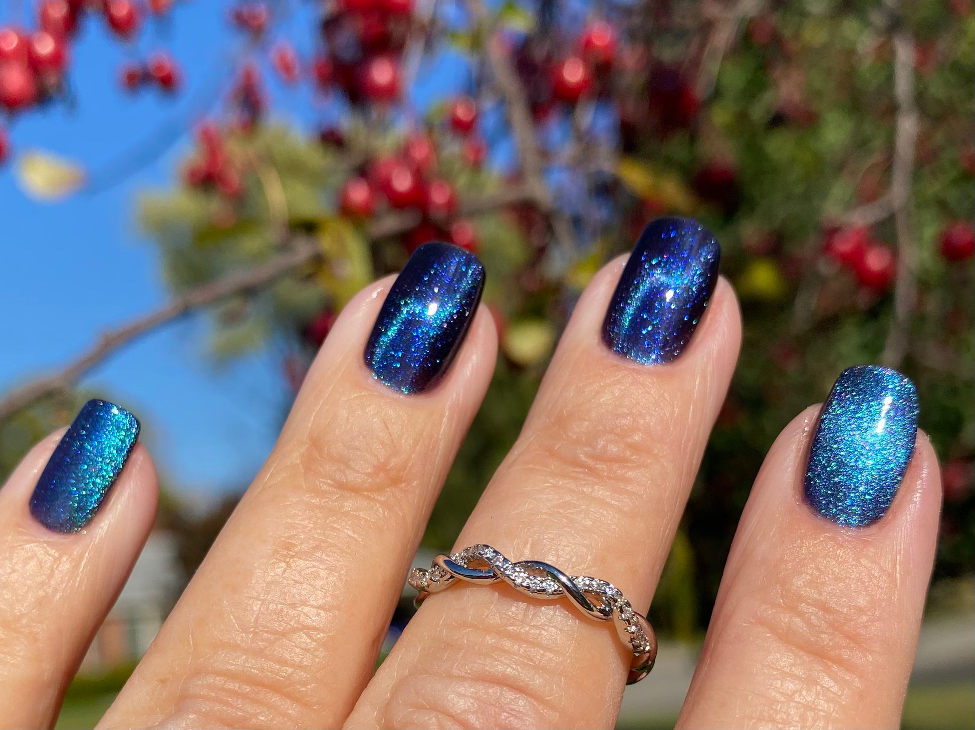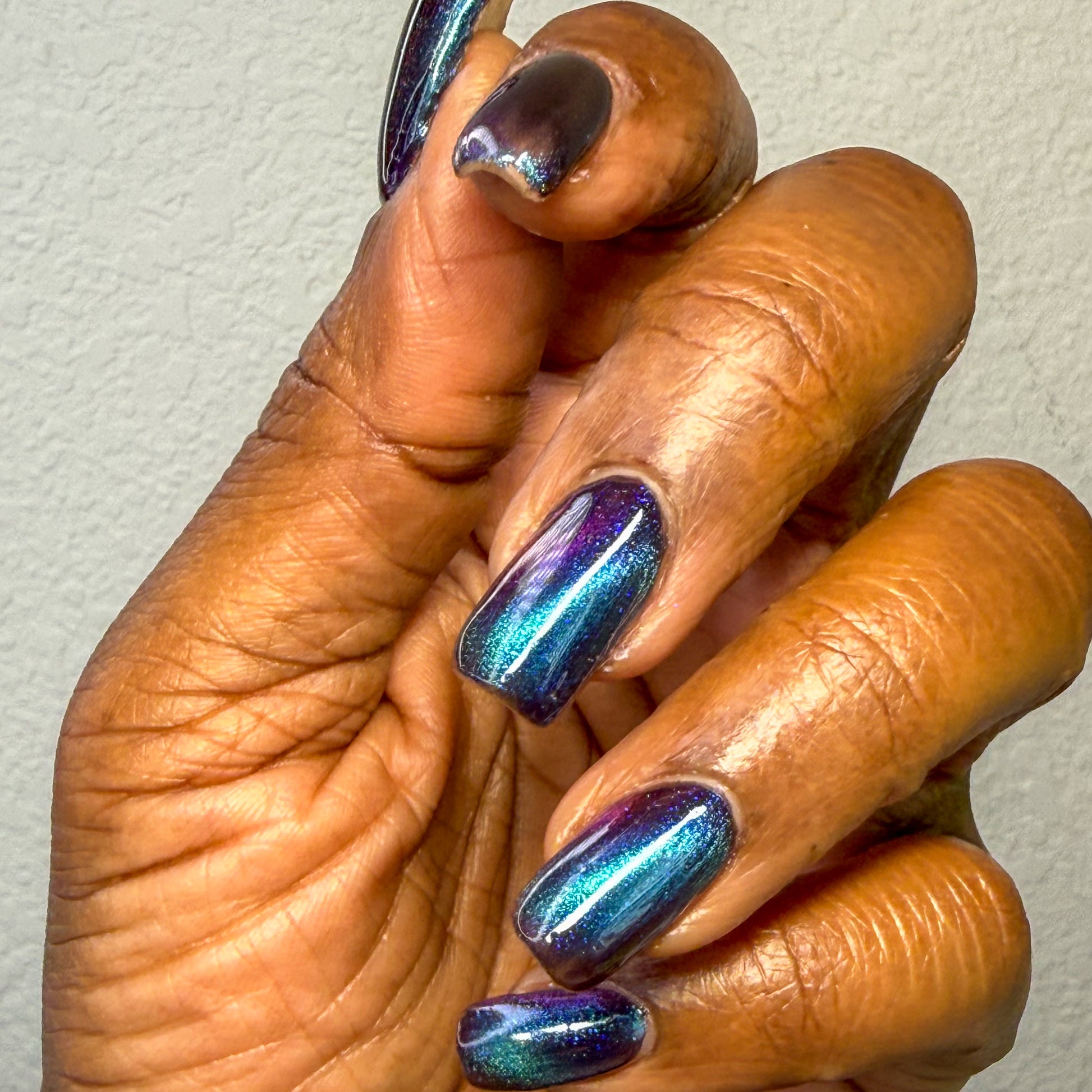 This entire collection is designed with a quick dry formula. Thin coats will dry quickly so have your magnet situated before you begin and work one finger at a time.
