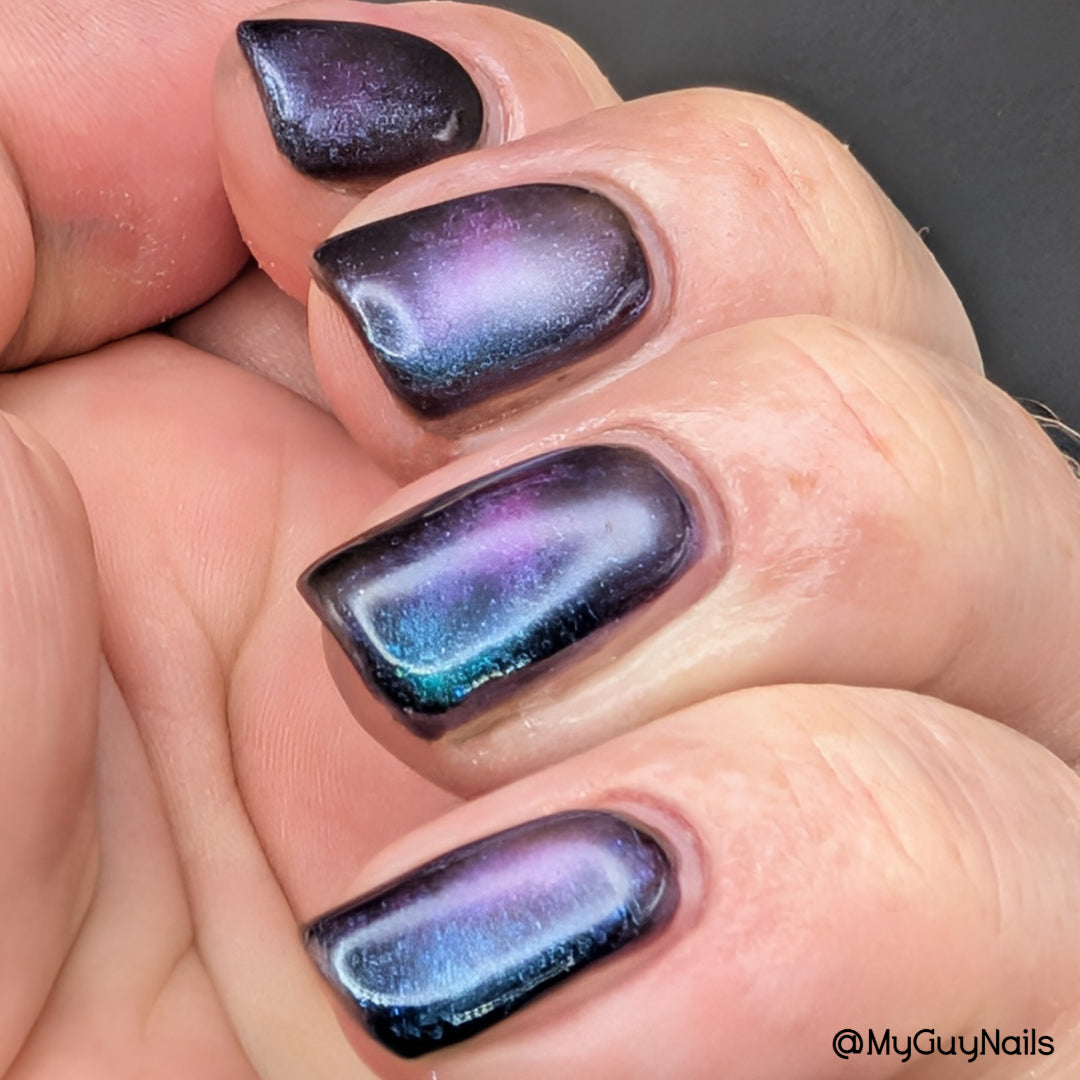 1: SHAKE THE BOTTLE BEFORE YOU BEGIN ; a quick shake, no need for throwing your arm out of socket ;) This is a quick dry formula which means it is thinner in viscosity and while that is great for fast drying magnetics you want the magnetic pigment to be evenly dispersed for best results.