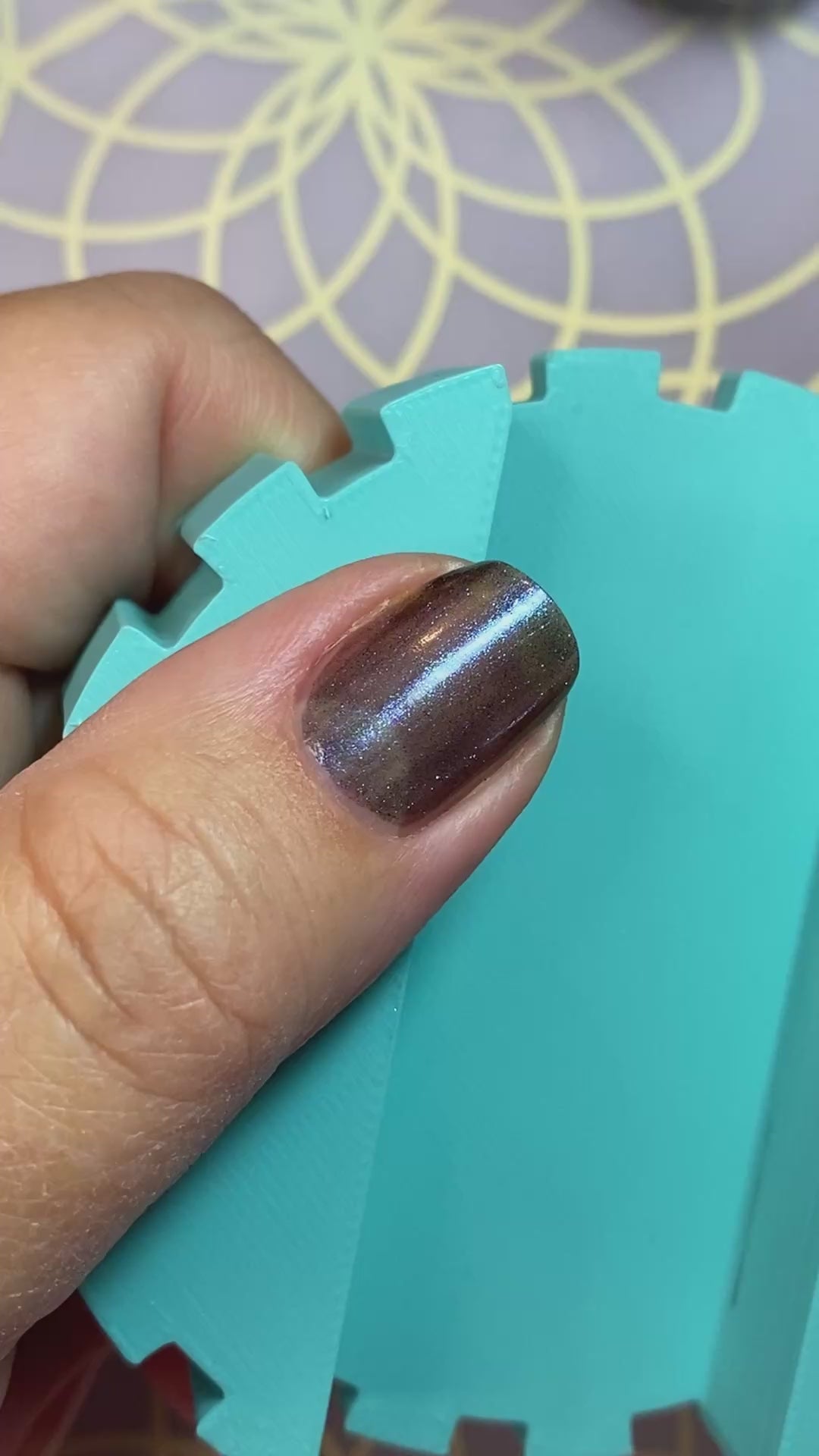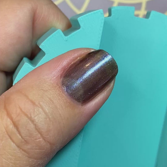 4: Use a quick dry top coat (with the magnet) such as our Fast, Hard & Shiny top coat to seal in that effect you have chosen (cat eye, velvet, lightning bolt, ect) and work 1 finger at a time. Our top coat dries incredibly fast so using the magnet with the top coat ensures your effect of choice stays.