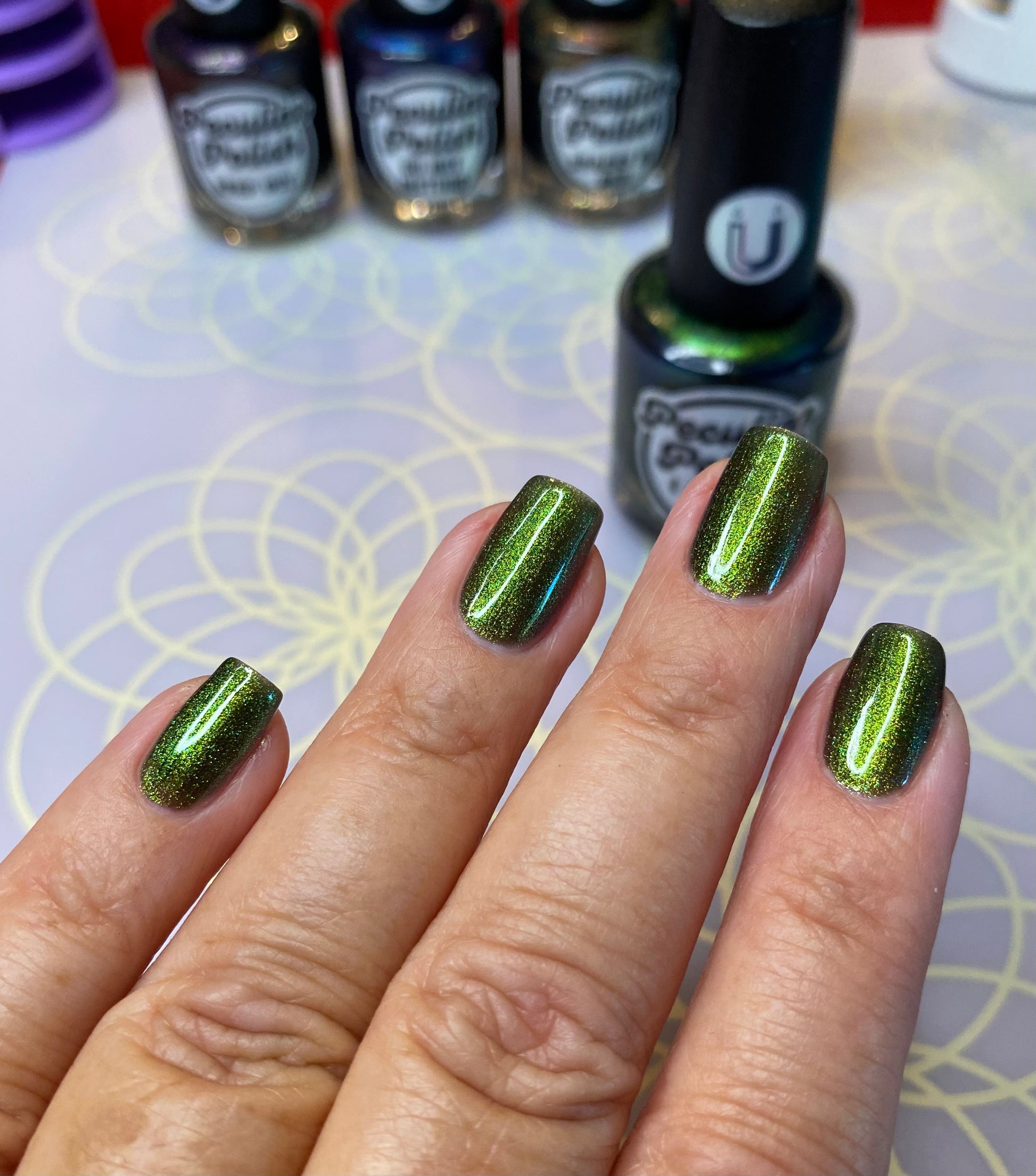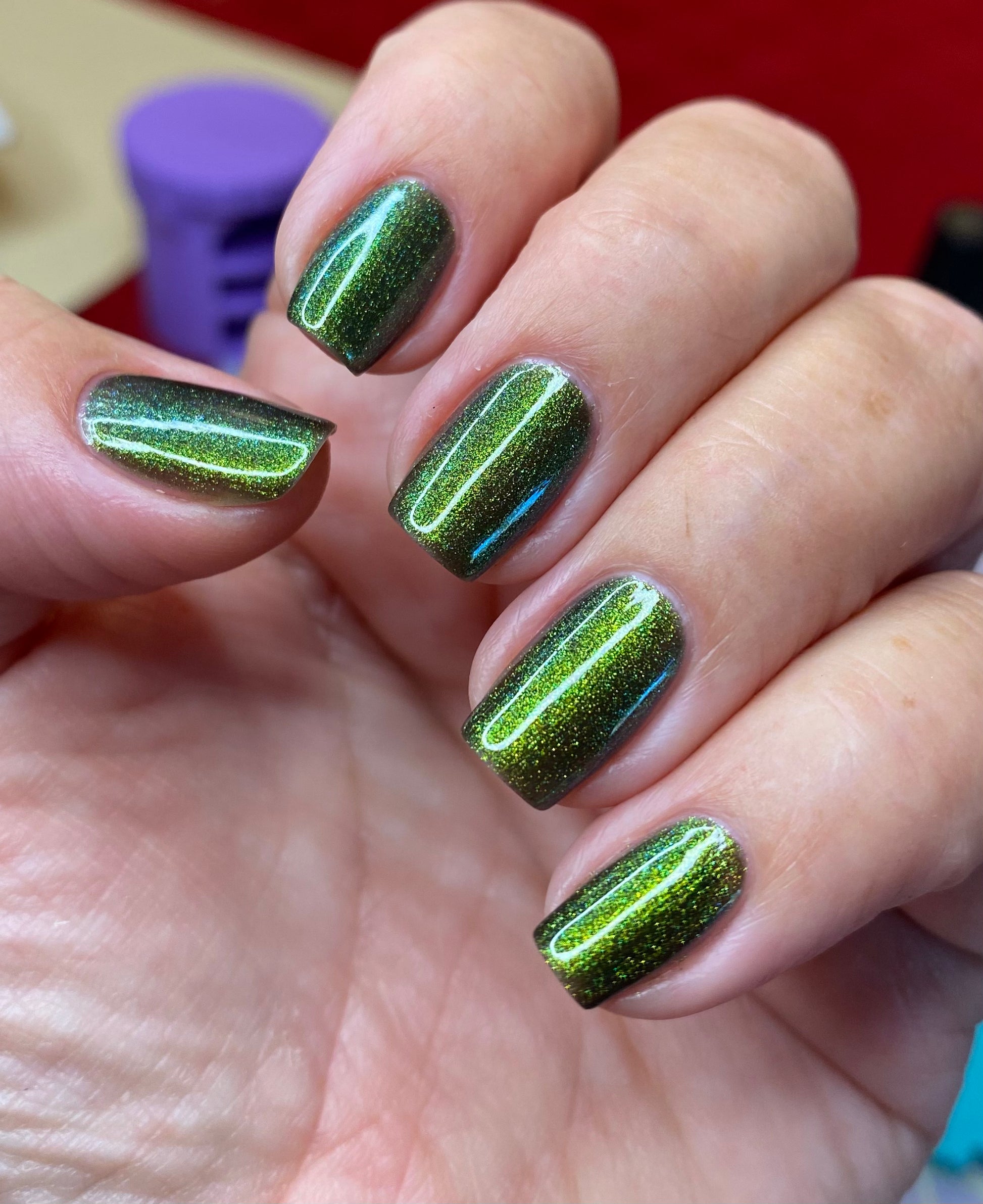 1: SHAKE THE BOTTLE BEFORE YOU BEGIN ; a quick shake, no need for throwing your arm out of socket ;) This is a quick dry formula which means it is thinner in viscosity and while that is great for fast drying magnetics you want the magnetic pigment to be evenly dispersed for best results.
