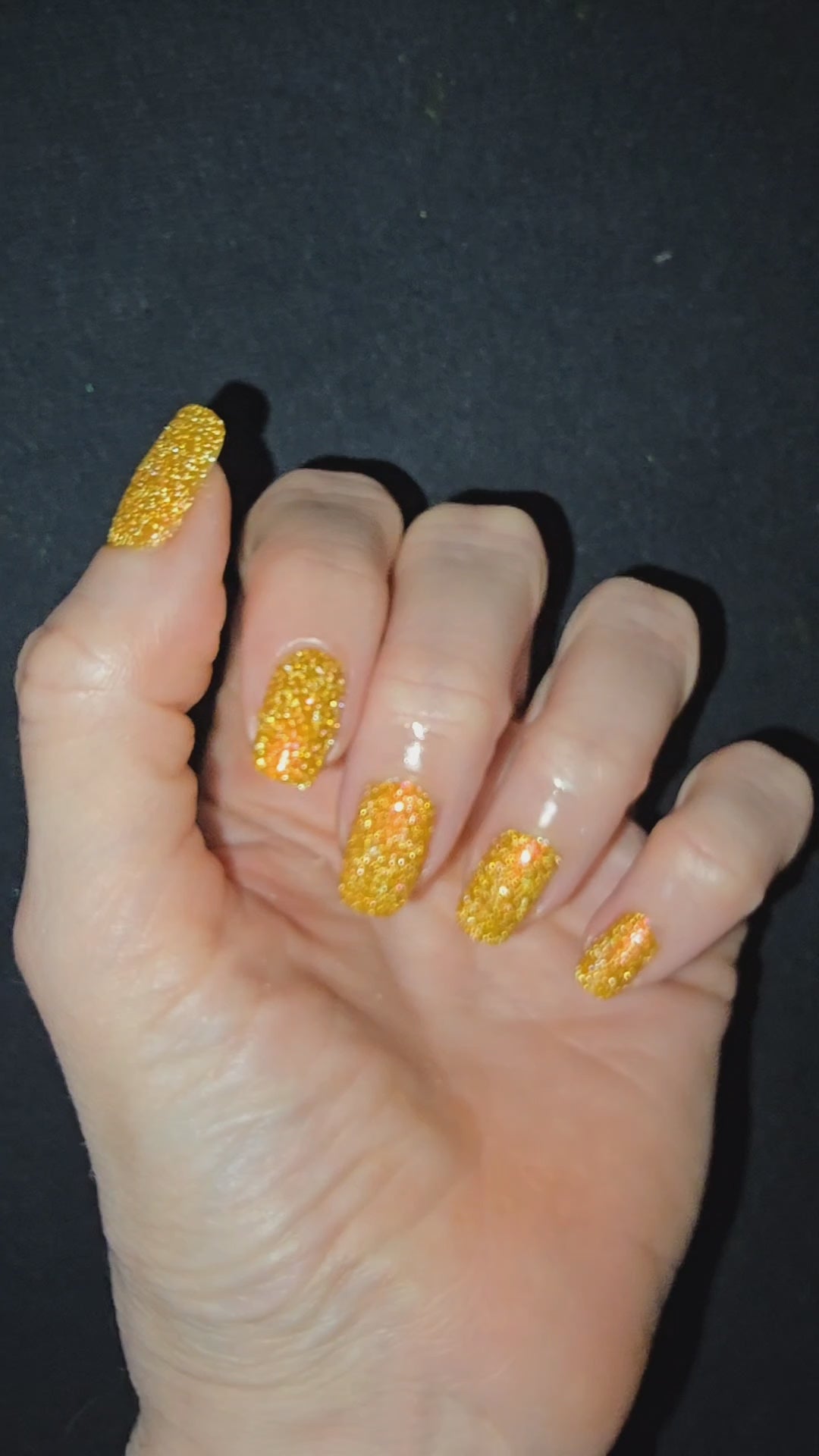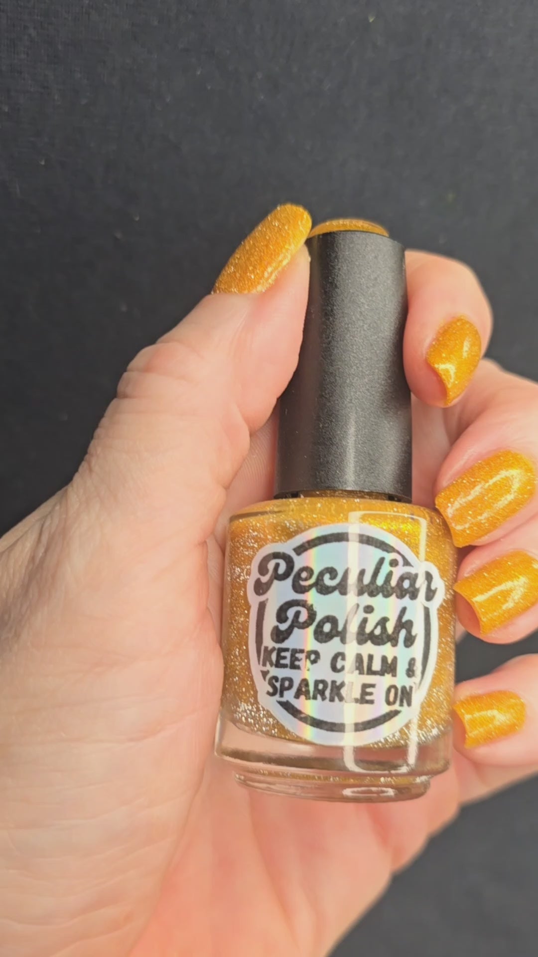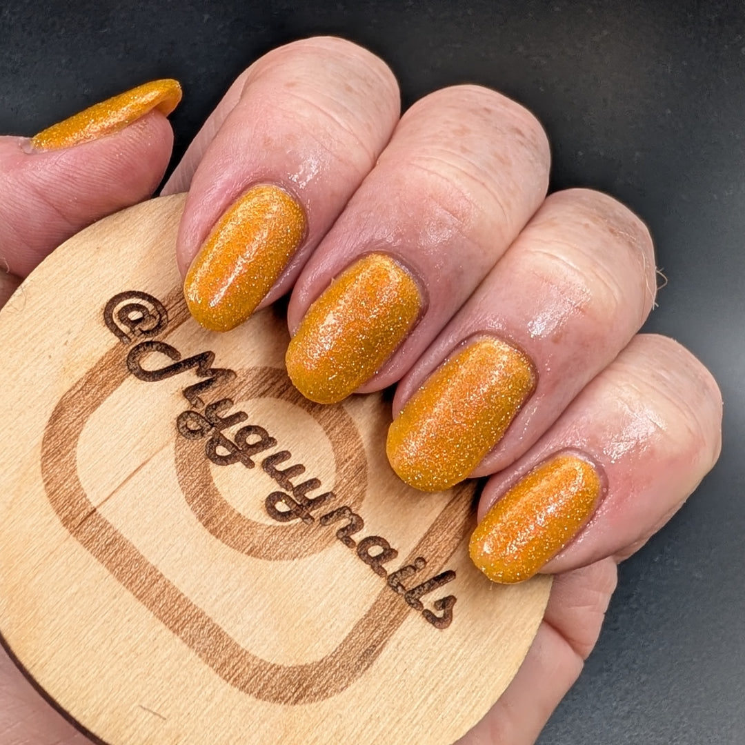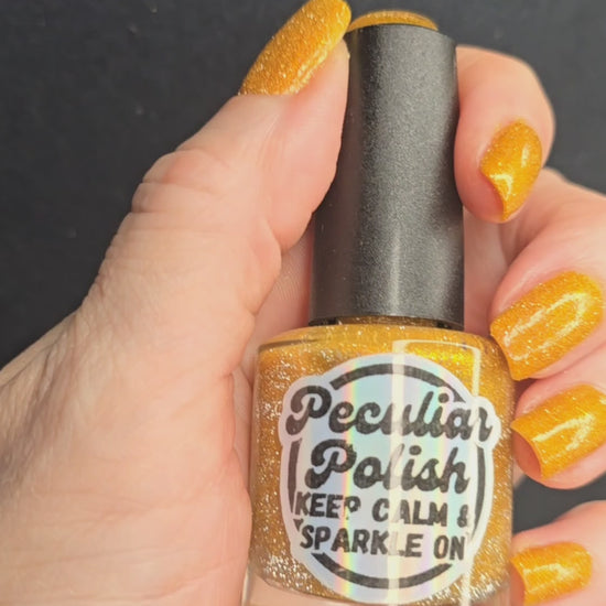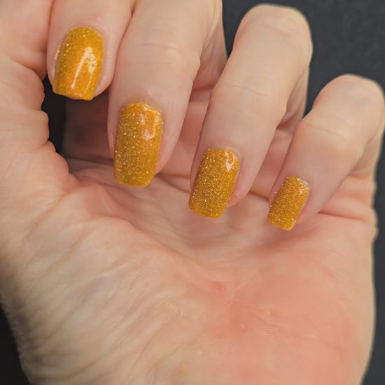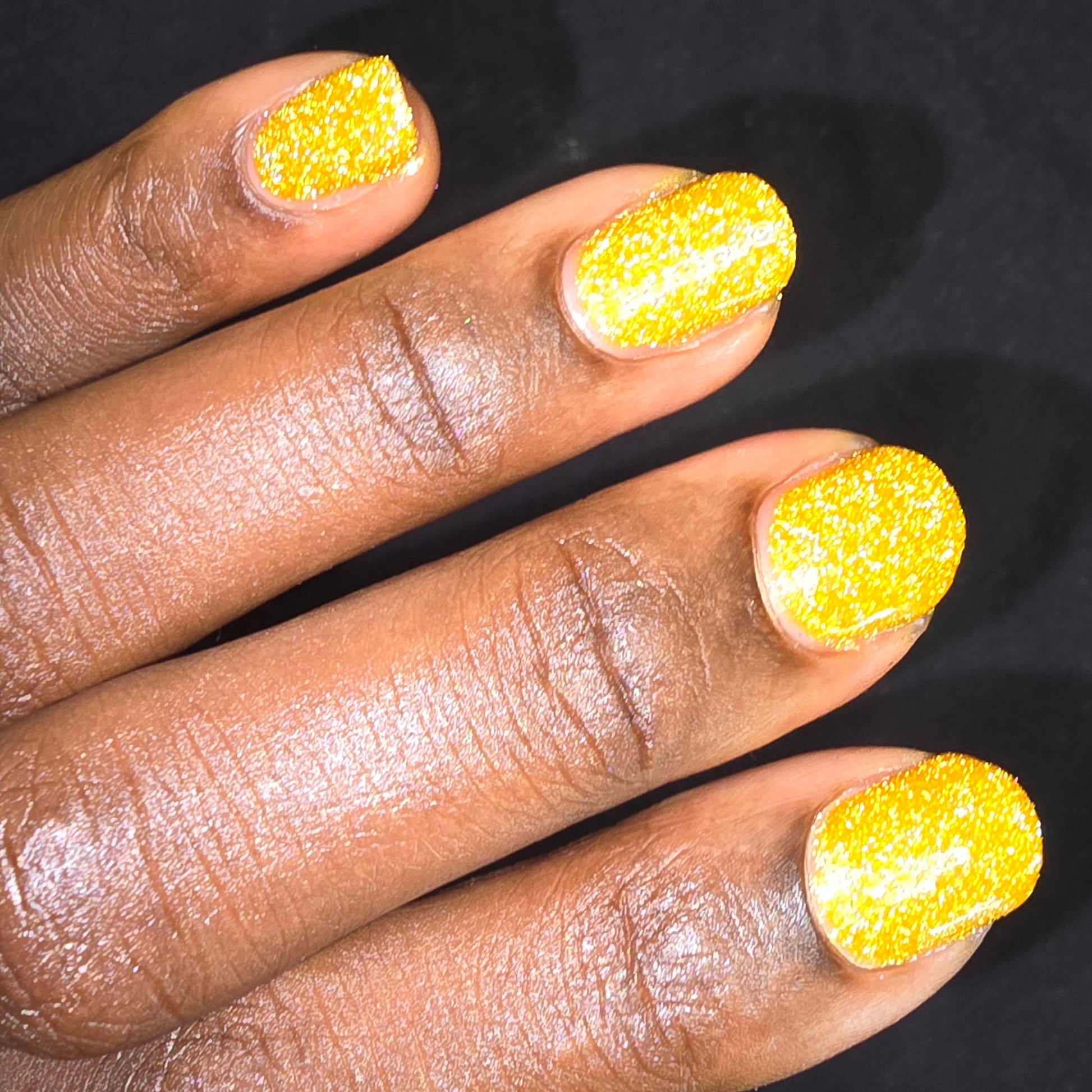 Keep Calm and Sparkle on is an orange jelly base. This base is more tinted than the collection siblings. There is reddish yellow/orange reflective glitter and a copper red aurora shimmer. $13.50
