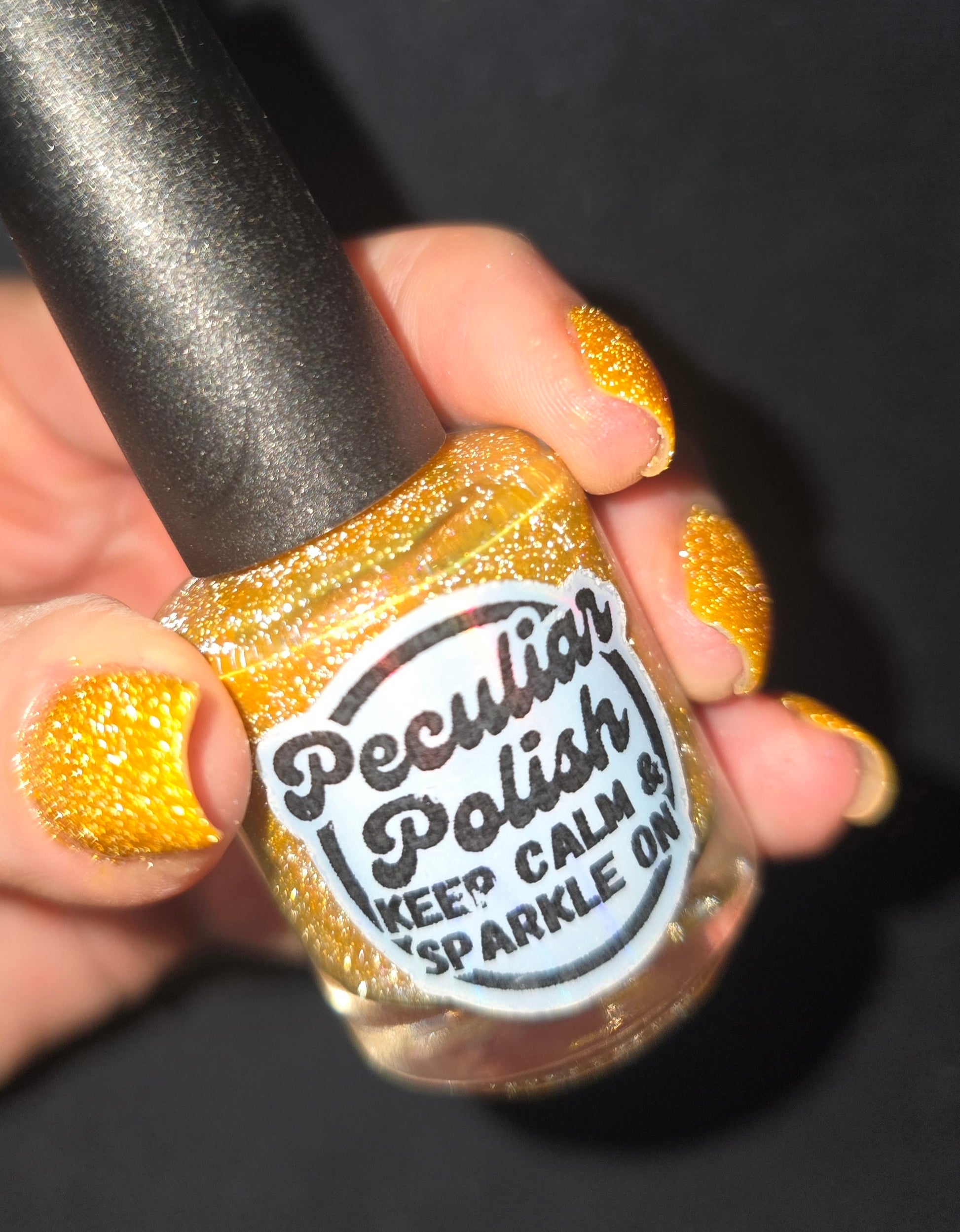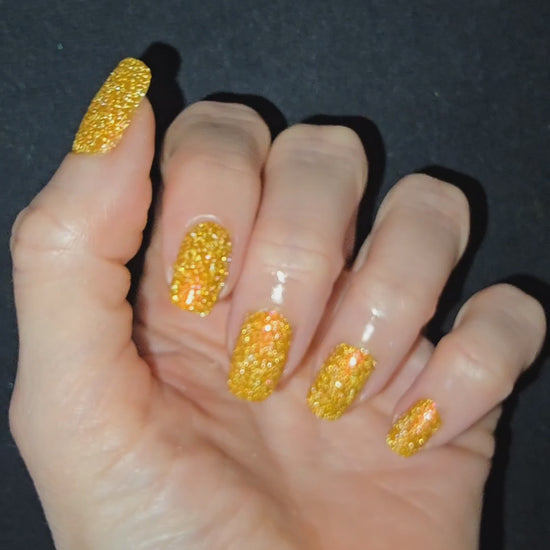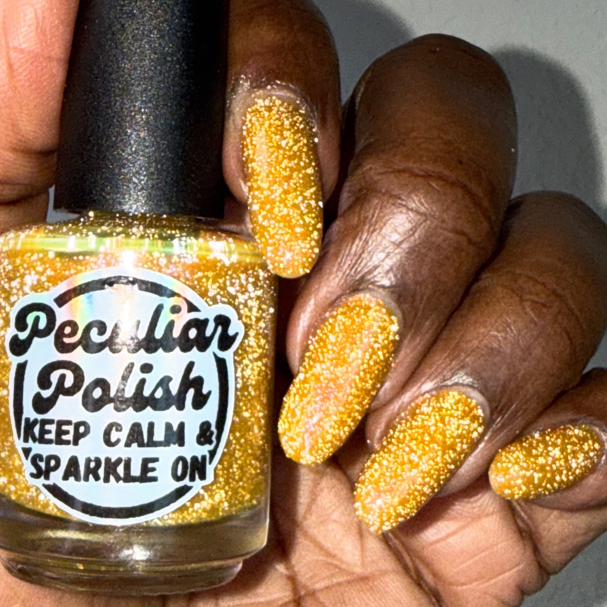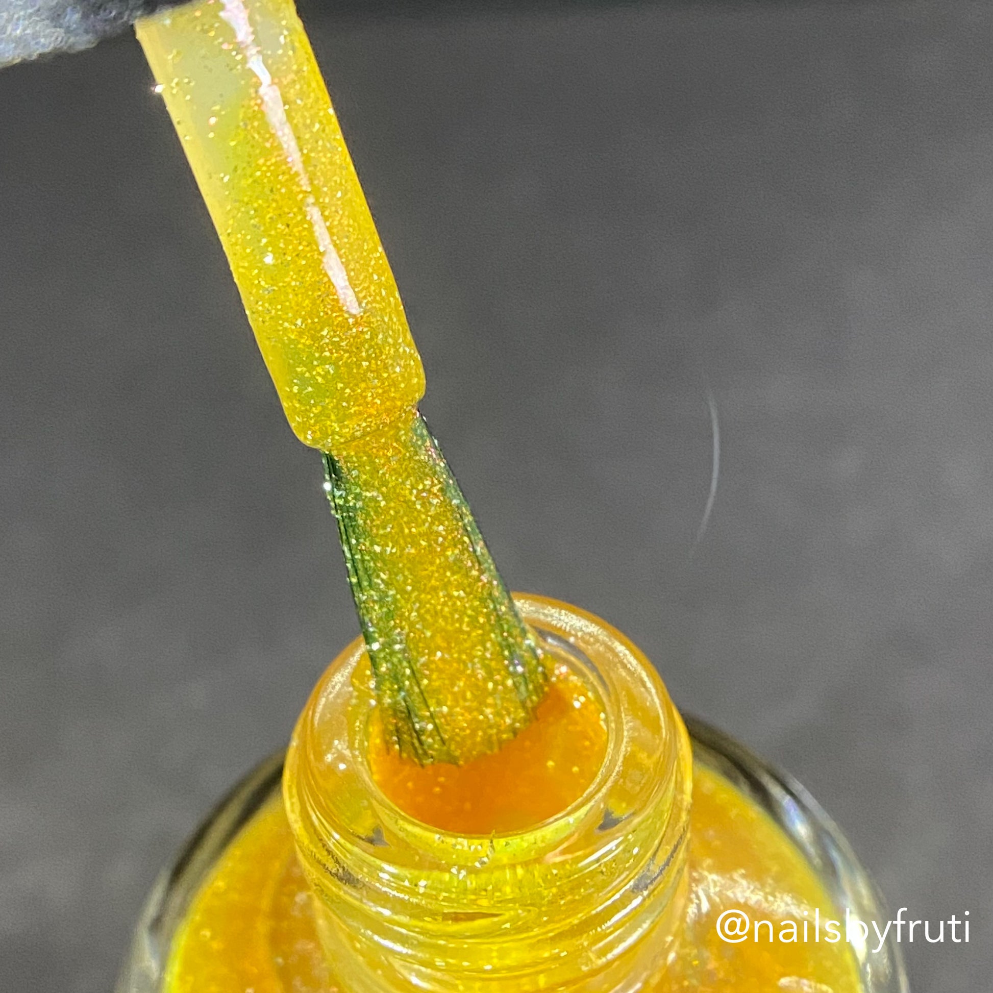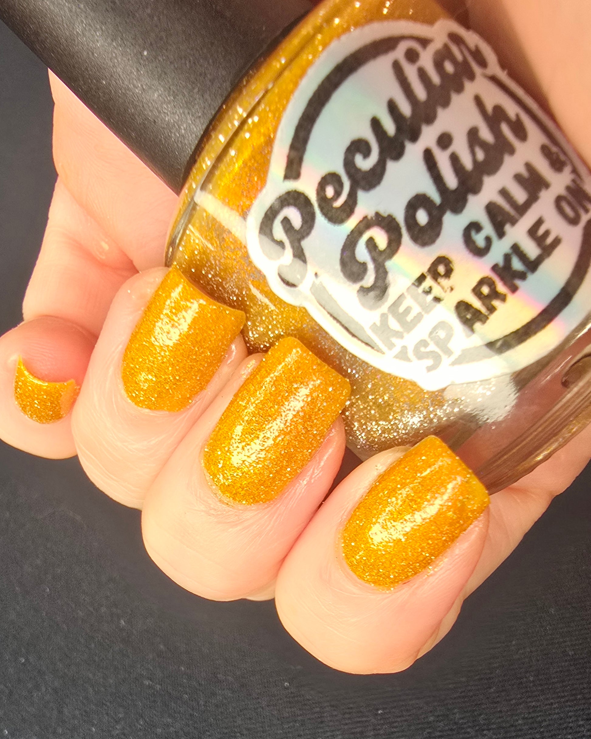Keep Calm and Sparkle on is an orange jelly base. This base is more tinted than the collection siblings. There is reddish yellow/orange reflective glitter and a copper red aurora shimmer. $13.50