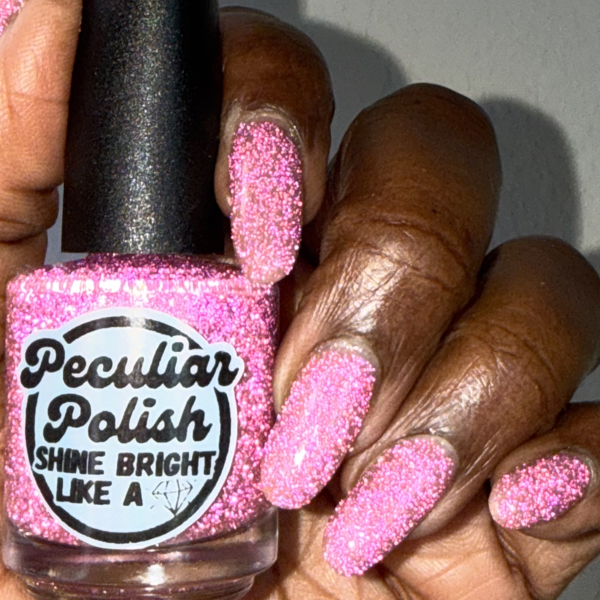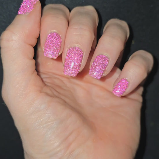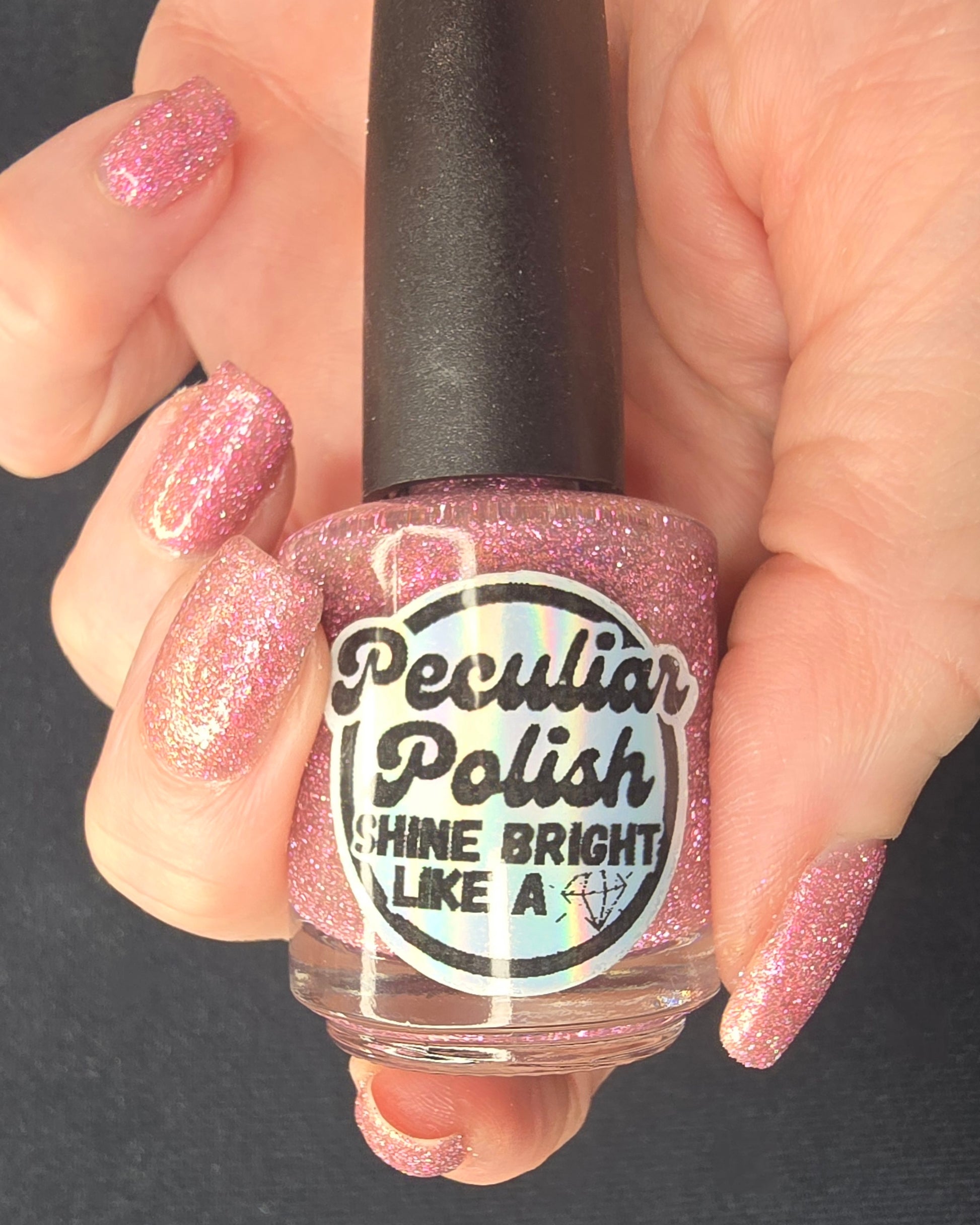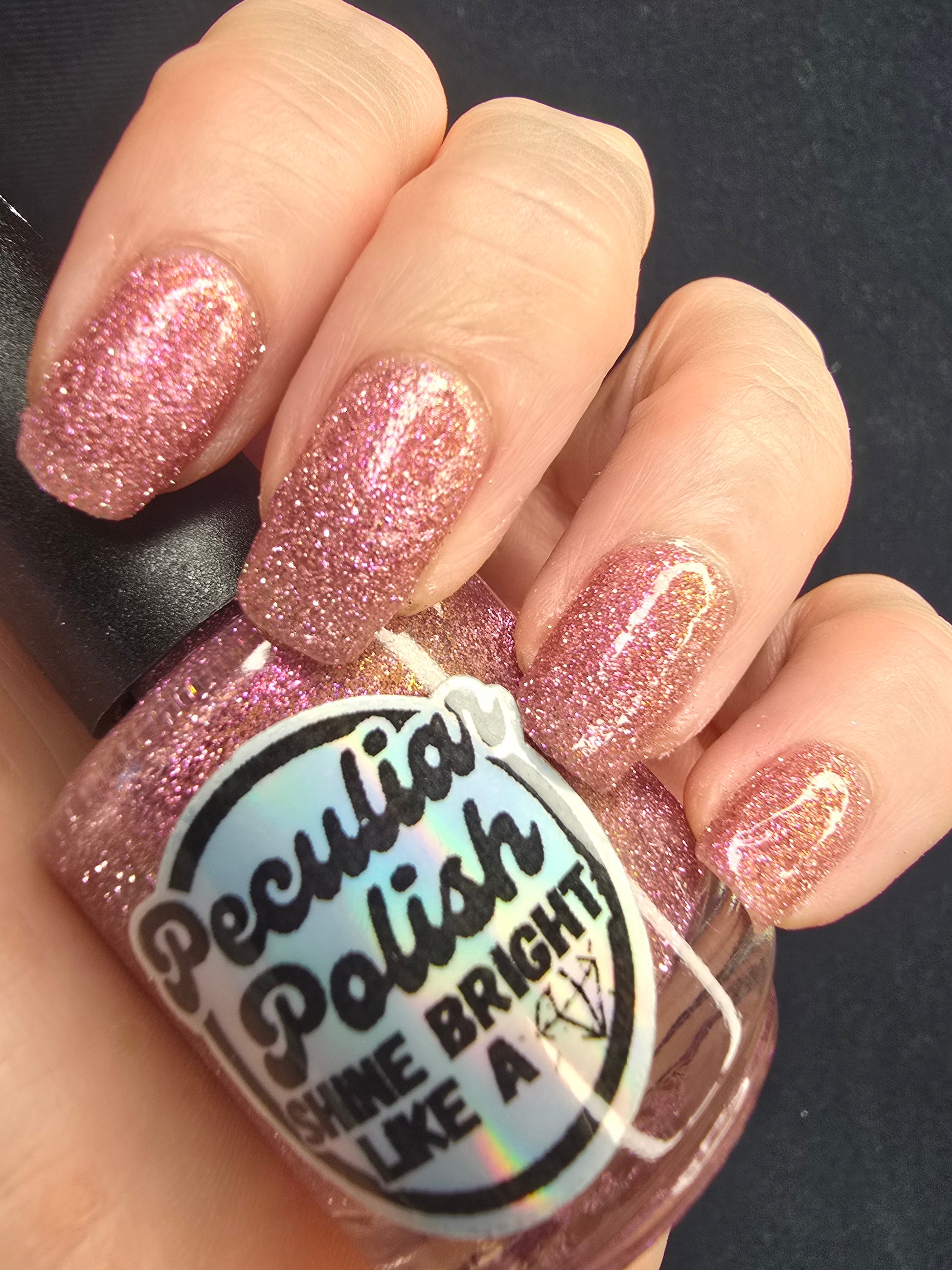 Shine Bright Like a Diamond is a very lightly tinted pink base with an abundance of pink reflective glitter and a pink to orange aurora shimmer.