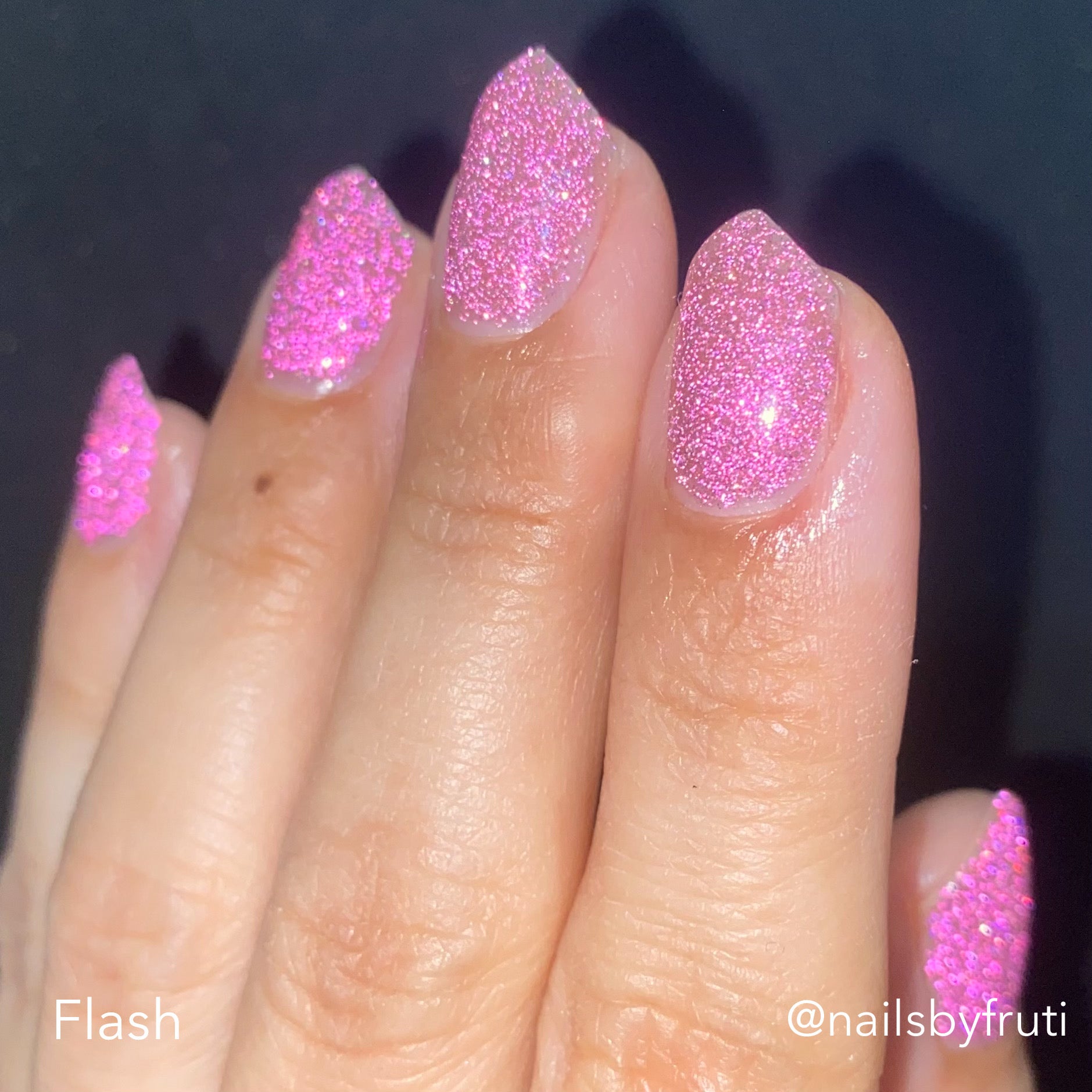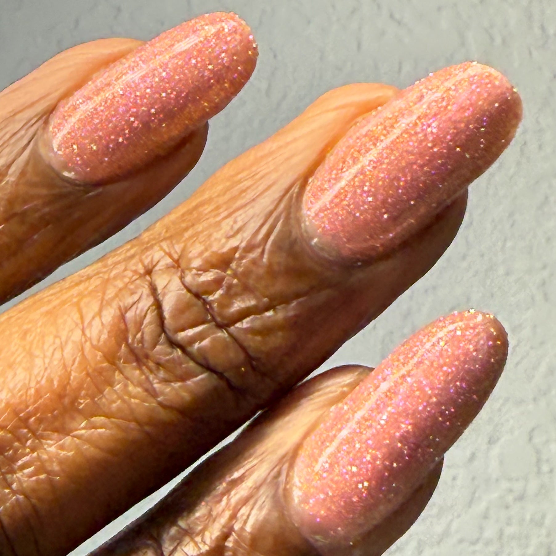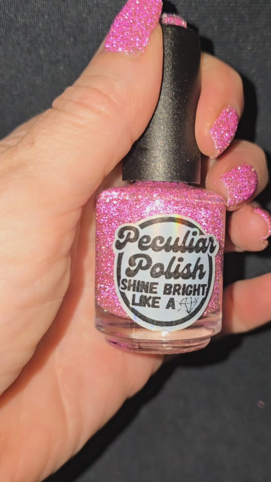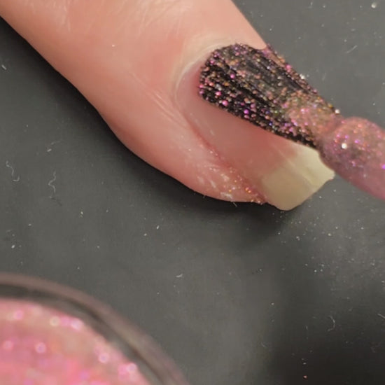 Shine Bright Like a Diamond is a very lightly tinted pink base with an abundance of pink reflective glitter and a pink to orange aurora shimmer.